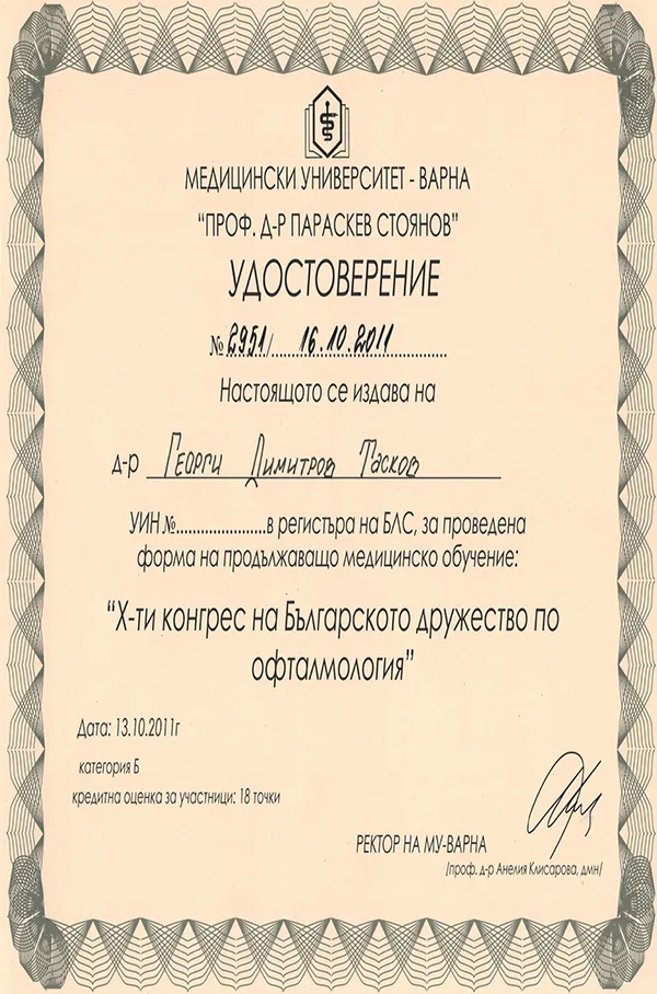 - "Живот на макс - Visumax" XVI конгрес на БДО (Българско дружество по офталмология), 3-6 октомври 2024, Бургас