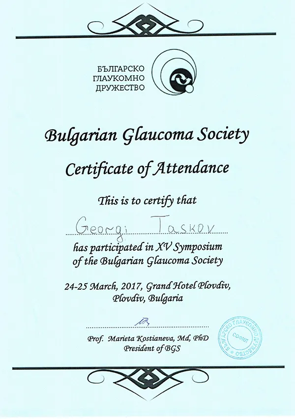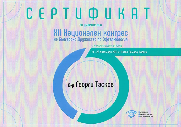 - "Пресбиопия? Правилният избор?!" XII конгрес на БДО (Българско дружество по офталмология), 19-22 октомври 2017, София