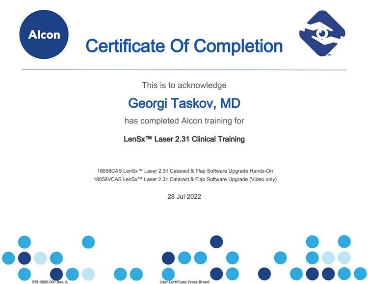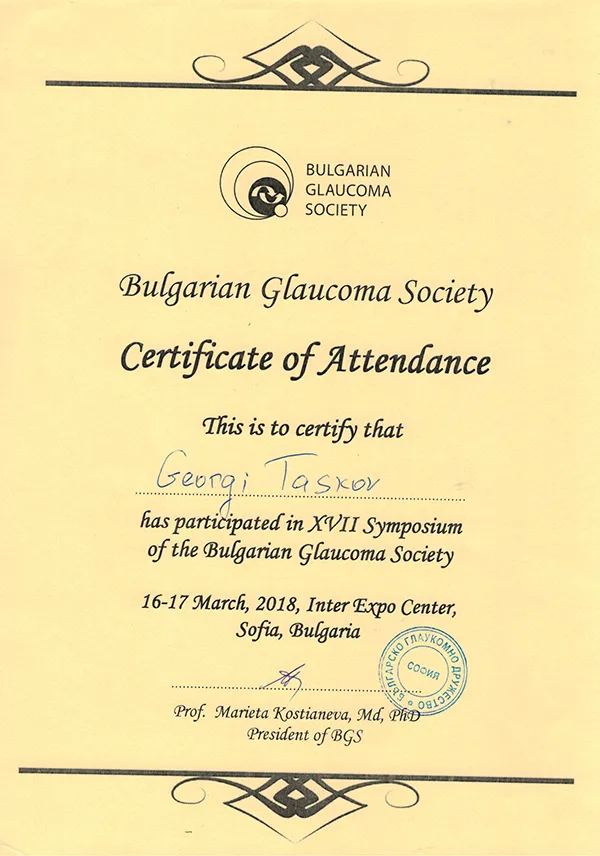 - "Трифокални лещи" XIII Академия по катарактална и рефрактивна хирургия (фирма Alcon), 12 май 2018, Боровец
