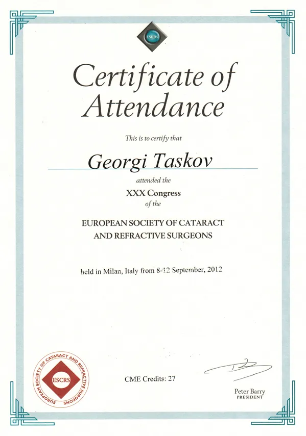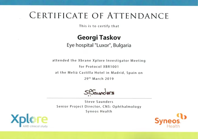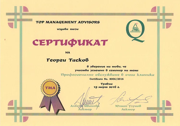 - Асистент в хирургия на живо (лазерна корекция на зрението) – "Еволюция в катаракталната хирургия" 14 май 2016, Пловдив