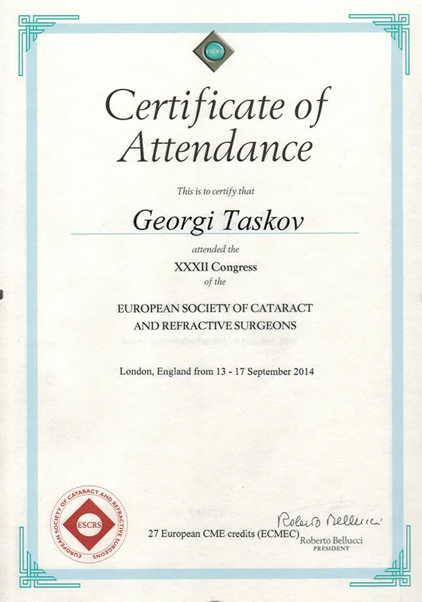 13-17 септември 2014 XXXII среща на Европейските рефрактивни и катарактални хирурзи в Лондон