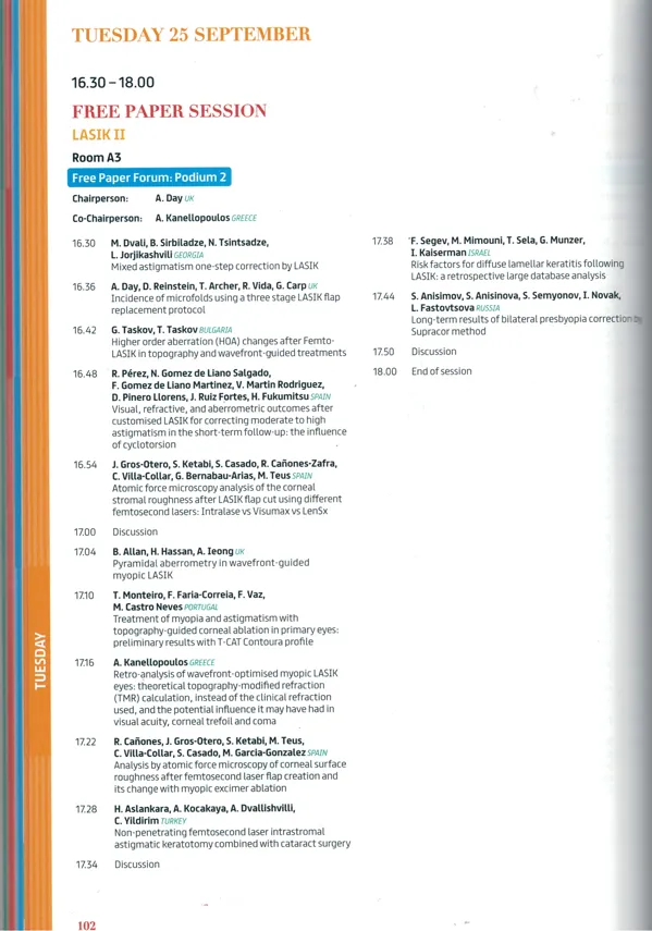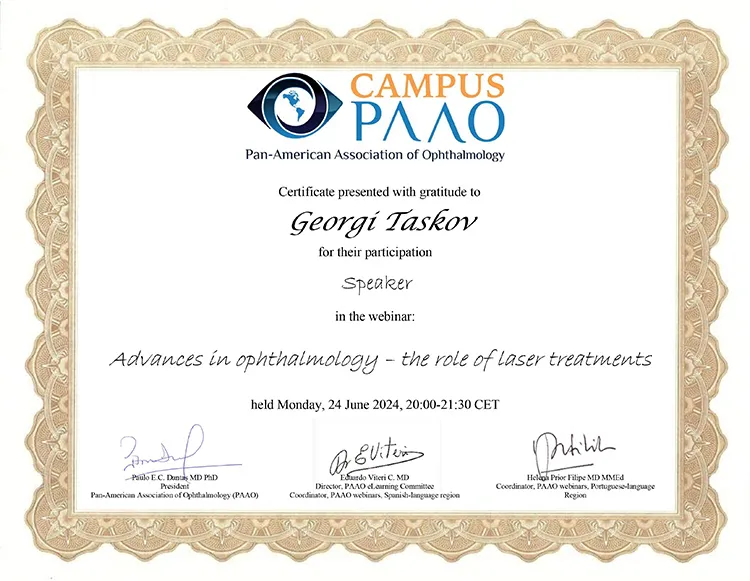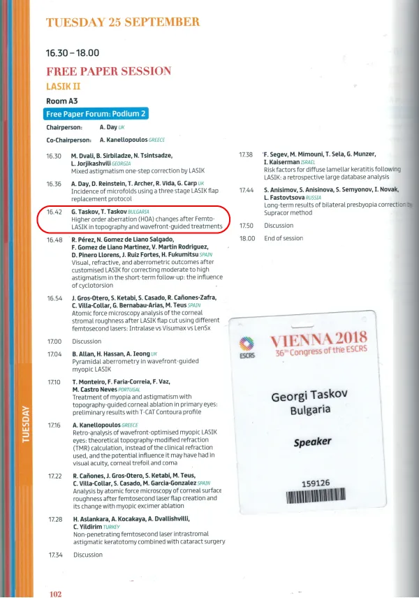 - "Иновации в кераторефрактивната хирургия" XVII конференция на Асоциация по катарактална и рефрактивна хирургия 17-19.05.2024, Варна