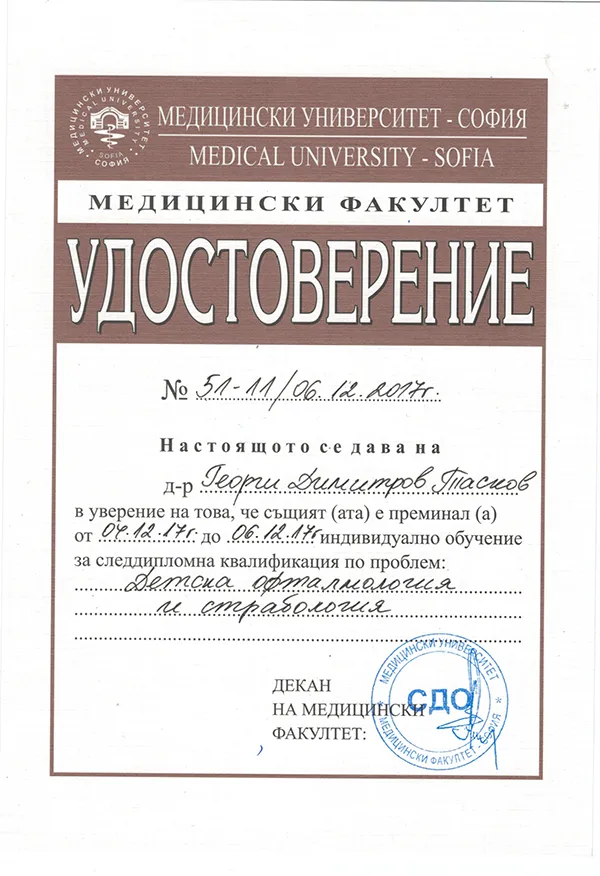- Детска офталмология и страбология - 4-6 декември 2017 МУ София