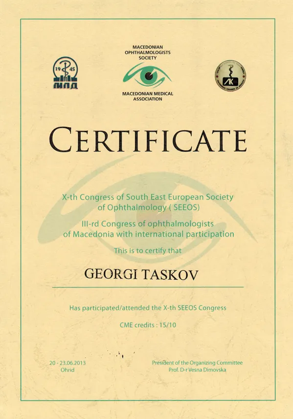 - "Многофокусни вътреочни лещи Рестор" на 10-тия годишен конгрес на сдружението на македонските офталмолози 20-23 юни 2013 в Охрид, Македония