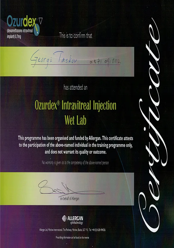 - Уетлаб, организиран от фирма Алерган, за поставяне на интравитреалния медикамент Озурдекс - 7-ми септември 2012 в Милано
