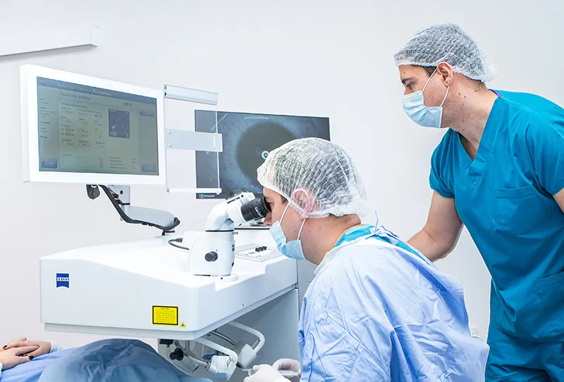 - Същинска корекция с фемтосекунден лазер (Carl-Zeiss Visumax 800)